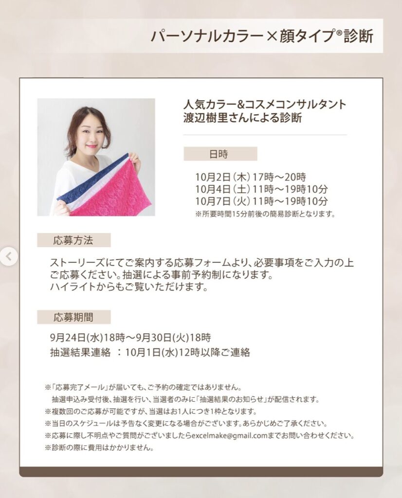 excel様渋谷ロフトpopupにてパーソナルカラー診断イベントを実施